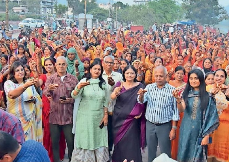 जयुपर। आगामी विधानसभा चुनाव में प्रत्येक मतदाता की सक्रिय भागीदारी एवं शत प्रतिशत मतदान सुनिश्चित करने के लिए जिला निर्वाचन कार्यालय द्वारा मतदाता जागरूकता अभियान के तहत विभिन्न कार्यक्रमों का आयोजन किया जा रहा है। जिला स्वीप टीम की ओर से बुधवार को हवामहल विधानसभा क्षेत्र के जल महल रोड स्थित जल महल की पाल पर दीपदान कार्यक्रम का आयोजन किया गया। इस दौरान सैकड़ों युवाओं, बुजुर्गों के साथ-साथ आंगनबाड़ी कार्याकर्ताओं ने दीपदान कर आमजन को विधानसभा चुनाव में मतदान की अपील की।