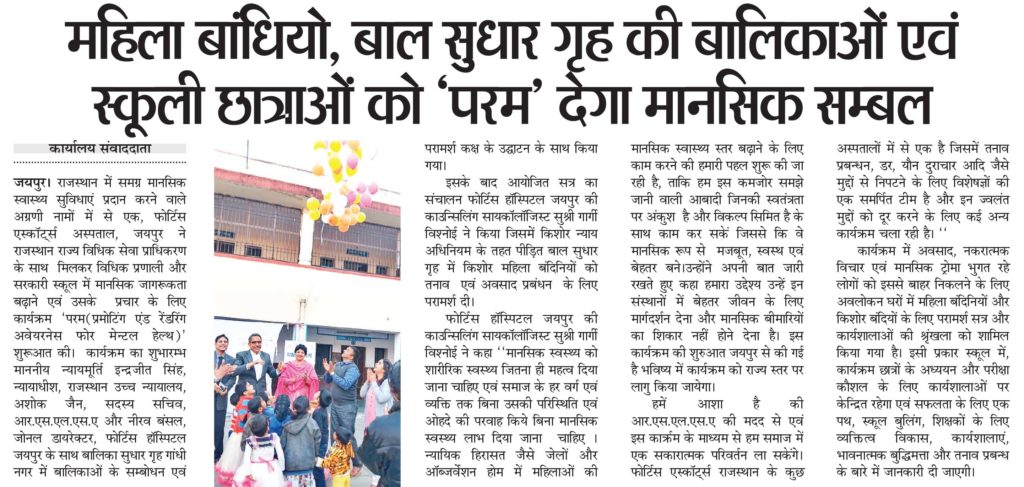 महिला बंधियो , बाल सुधार गृह की बालिकाओं एवं स्कूल छात्राओ को ‘परम ‘ देगा मानसीक संबल