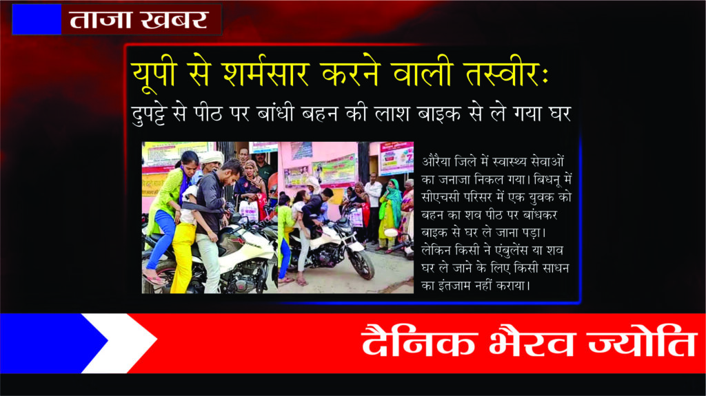 औरैया। औरैया जिले में स्वास्थ्य सेवाओं की हालत कितनी बदतर है, इसका उदाहरण यहां सीएचसी में देखने को मिला। पानी गर्म करने के लिए बाल्टी में डाली गई रॉड छू जाने से नवीन बस्ती पश्चिमी निवासी प्रबल प्रताप सिंह की पुत्री अंजलि (20) बेसुध हो गई। परिजन की नजर पड़ने पर उसे बेसुध हालत में सीएचसी ले जाया गया। जहां डॉक्टर ने युवती को मृत घोषित कर दिया। इसके बाद जो हुआ उसे सीएचसी परिसर में मौजूद लोग एक टक देखते रहे। शव ले जाने के लिए कोई साधन नहीं मिला तो भाई ने शव बाइक पर रखा। दूसरी बहन पीछे बैठी। बीच में मृत बहन का शव भाई ने दुपट्टे से पीठ पर बांधा और घर के लिए रवाना हो गया। तकरीबन 15 मिनट तक हर किसी की निगाहें इस पूरे घटनाक्रम पर टिकी रहीं।